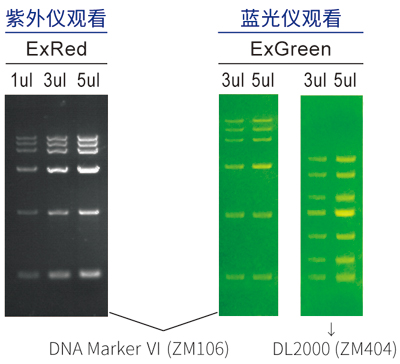 特別提示:使用紫外成像儀,請選擇ExRed、ExGreen;使用可見光裝置,請選用ExGreen。