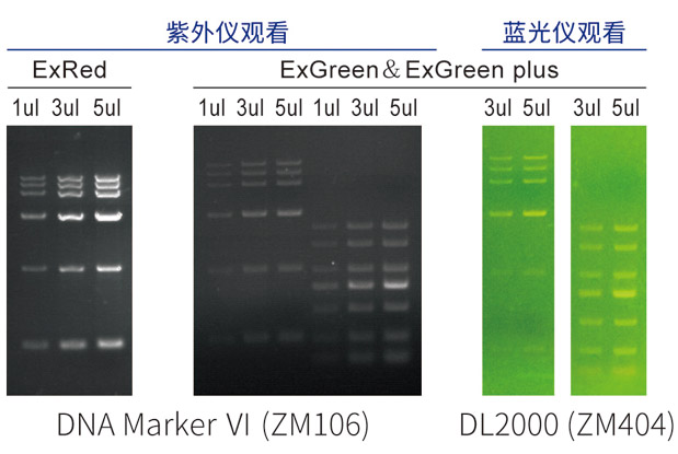 特別提示:使用紫外成像儀,請選擇ExRed、ExGreen plus、ExGreen;使用可見光裝置,請選用ExGreen plus、ExGreen。