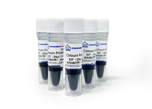 本產(chǎn)品由10-180 kDa的10種純化的天然蛋白混合而成,其中70 kDa為橙紅色蛋白條帶,10 kDa為綠色蛋白條,方便判斷各個(gè)條帶的準(zhǔn)確位置。產(chǎn)品適合作為SDS-PAGE電泳時(shí)變性蛋白樣品的分子量參照,并可實(shí)時(shí)觀(guān)察蛋白樣品的電泳分離狀況,也可用于檢測(cè)Western blot的轉(zhuǎn)膜效率。由于共價(jià)結(jié)合的染料會(huì)影響蛋白質(zhì)分子的電泳遷移率,本產(chǎn)品僅適于粗略地估計(jì)目的蛋白樣品的分子量。