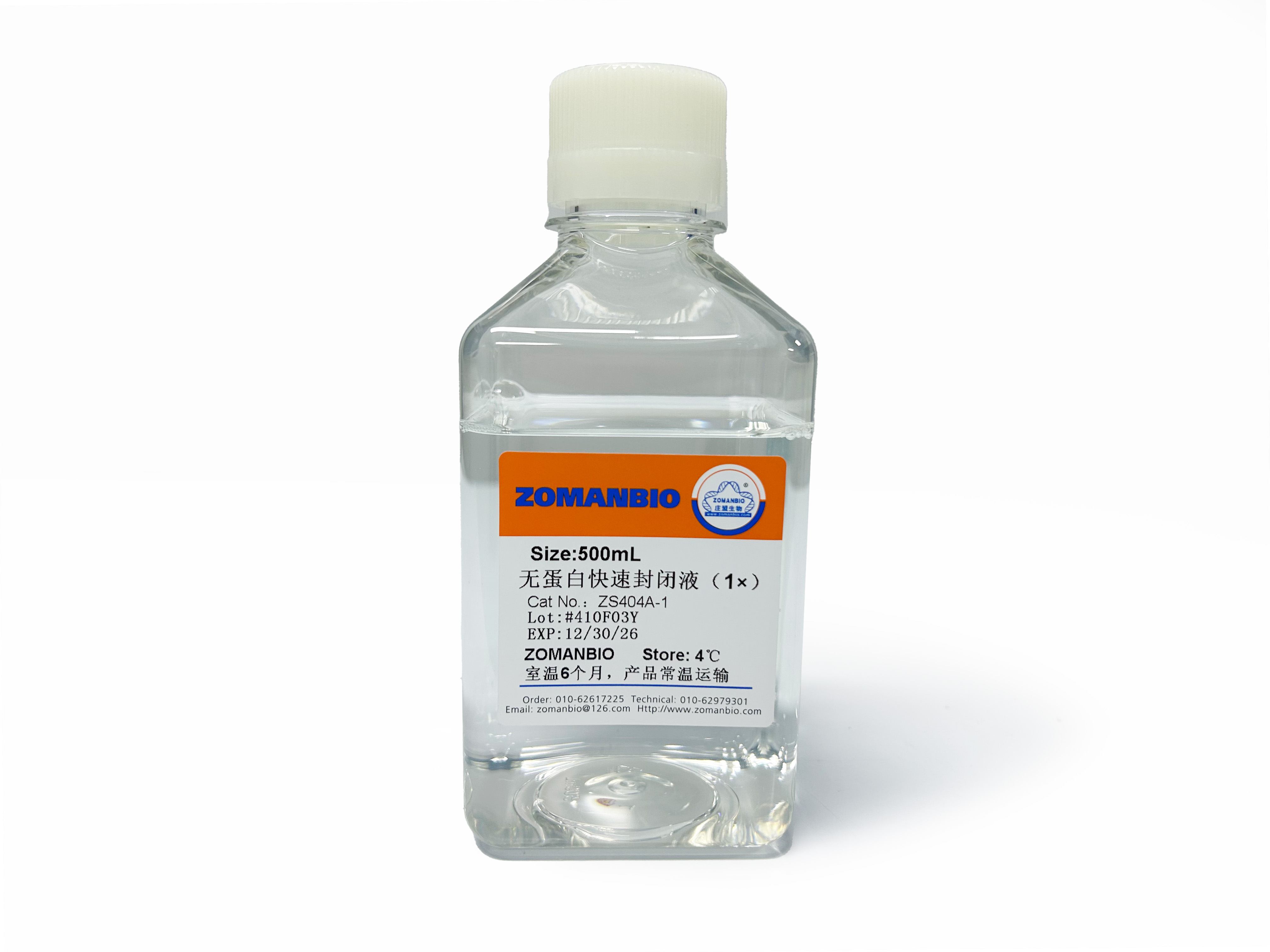 本品為Western Blot 轉(zhuǎn)印膜快速高效封閉液。采用無(wú)蛋白配方,10min即可快速高效地封閉膜上多余的結(jié)合部位,避免抗體與膜的非特異結(jié)合,最大程度地降低背景并提高信噪比。另外,本封閉液無(wú)內(nèi)源的磷酸化蛋白及生物素,對(duì)磷酸化特異抗體及生物素檢測(cè)也不會(huì)產(chǎn)生干擾。實(shí)驗(yàn)表明,本封閉液對(duì)許多抗體都有不同程度的信號(hào)增強(qiáng)作用,然而這種信號(hào)增強(qiáng)作用因抗體而異,對(duì)某一特定抗體,并不一定具有確定的信號(hào)增強(qiáng)作用。封閉液中不含有毒的疊氮化納或硫柳汞鈉等防腐劑,不會(huì)干擾HRP活性,安全系數(shù)很高,也不影響特異性磷酸化、乙?;⒓谆贵w檢測(cè)。