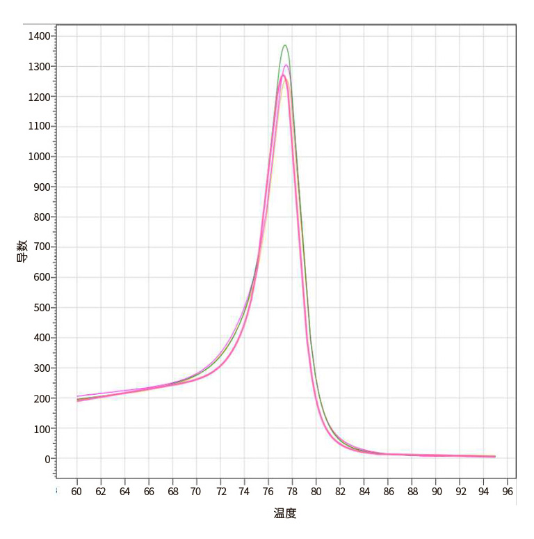 以水稻miRNA為模板,使用本產品與某T公司和某V公司同類產品進行反轉錄,得到的cDNA進行熒光定量檢測osa-miR156a??梢钥吹?,使用本產品得到的融解曲線為單峰,同類產品得到的融解曲線為雙峰。