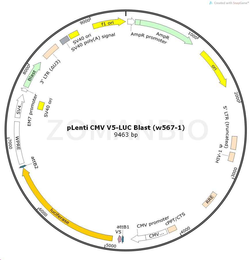 質(zhì)粒序列請下載:ZK806pLenti CMV V5-LUC Blast (w567-1)慢病毒表達(dá)質(zhì)粒.txt