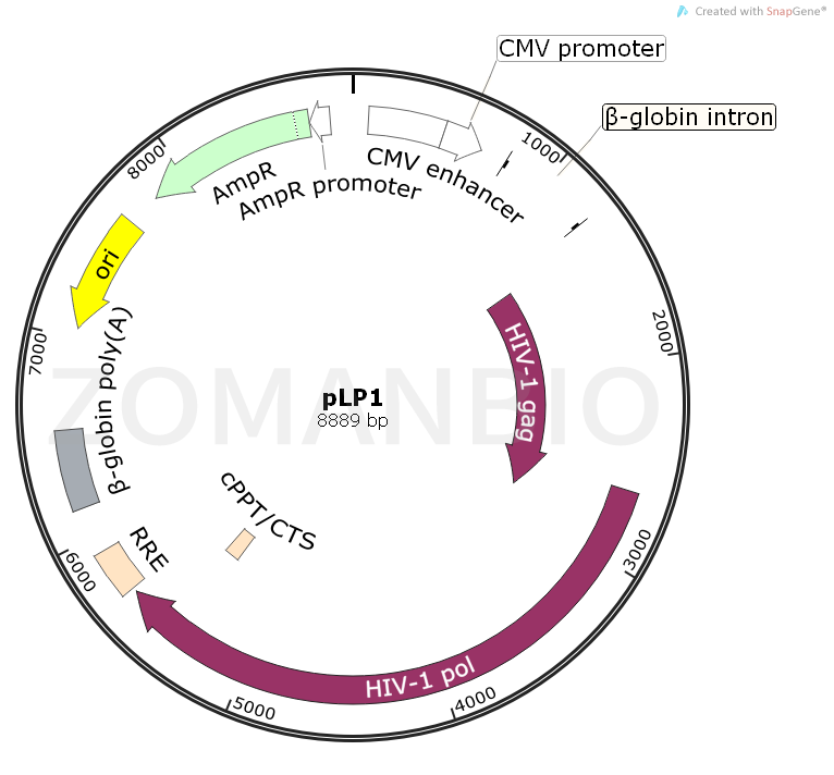 質(zhì)粒序列請(qǐng)下載:ZK838pLP1慢病毒包裝質(zhì)粒.txt
