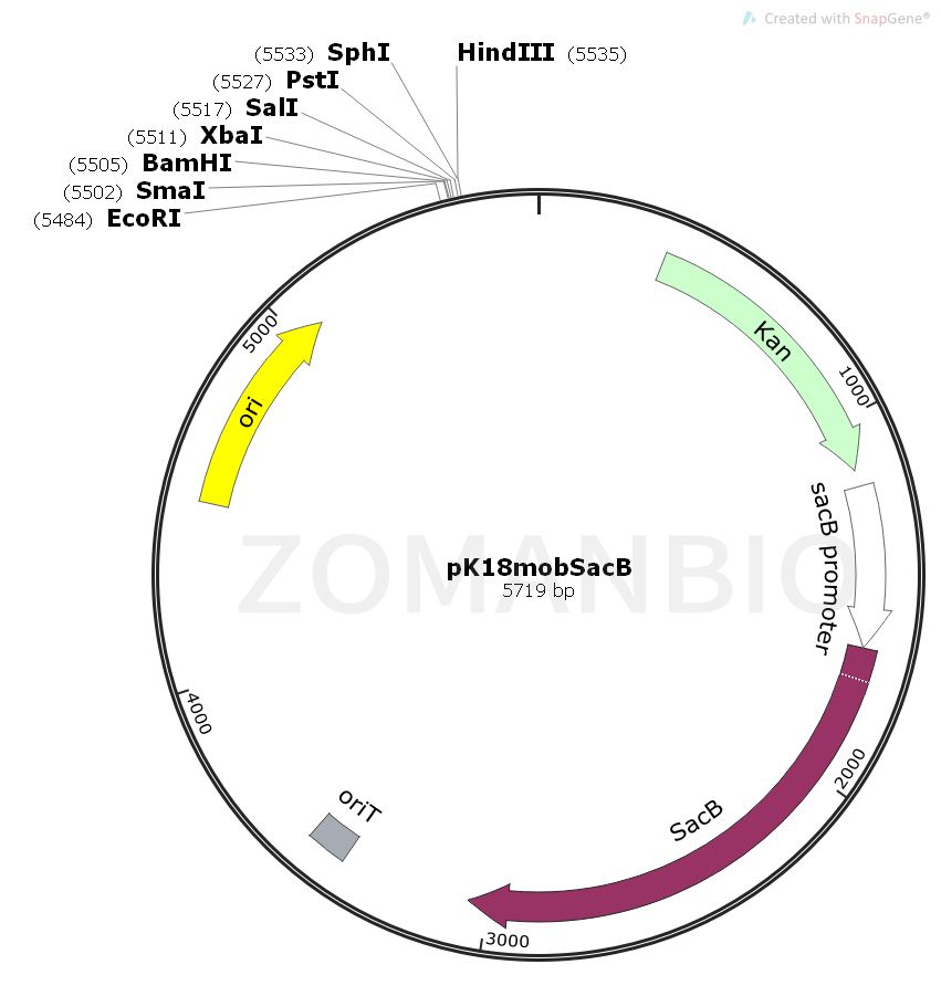 pK18mobSacB是一個大腸桿菌自殺質(zhì)粒。