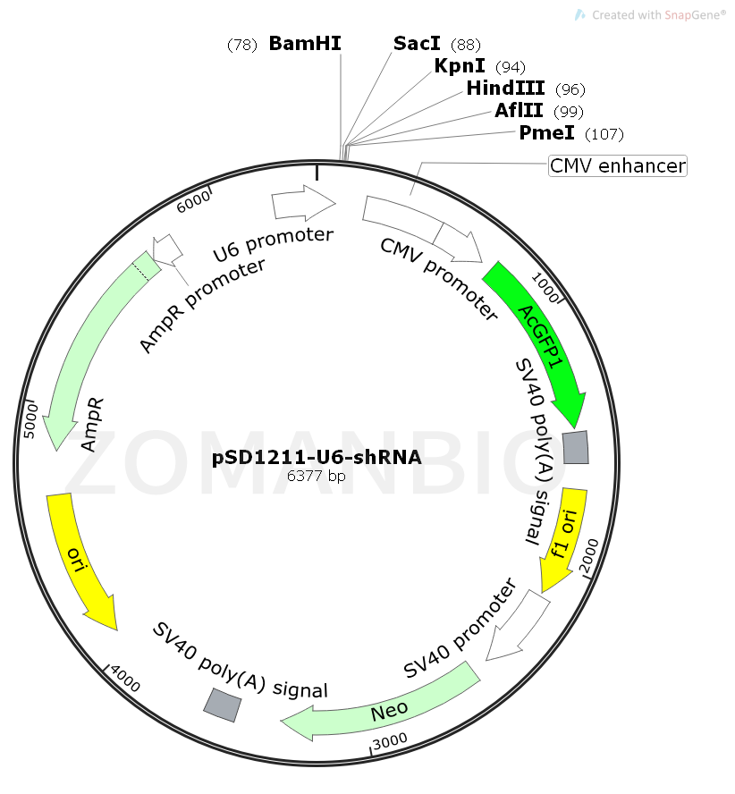 產(chǎn)品名稱:pSD1211-U6-shRNA