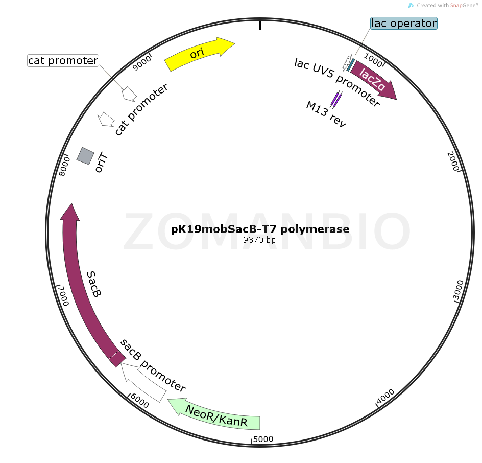 質(zhì)粒序列請下載:ZK2007 pK19mobSacB-T7 polymerase聚合酶基因質(zhì)粒.txt