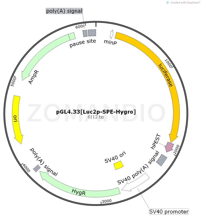 質(zhì)粒序列請(qǐng)下載:ZK2050 pGL4.33[Luc2p-SPE-Hygro]哺乳報(bào)告質(zhì)粒.txt