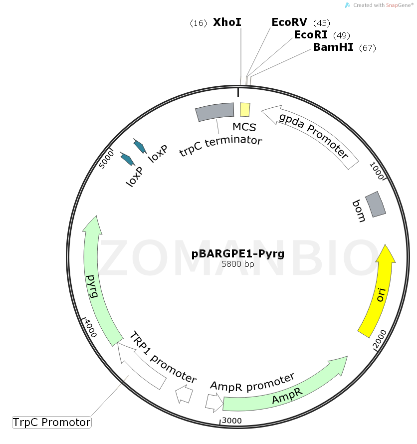 pBARGPE1-PyrG真菌表達(dá)質(zhì)粒。