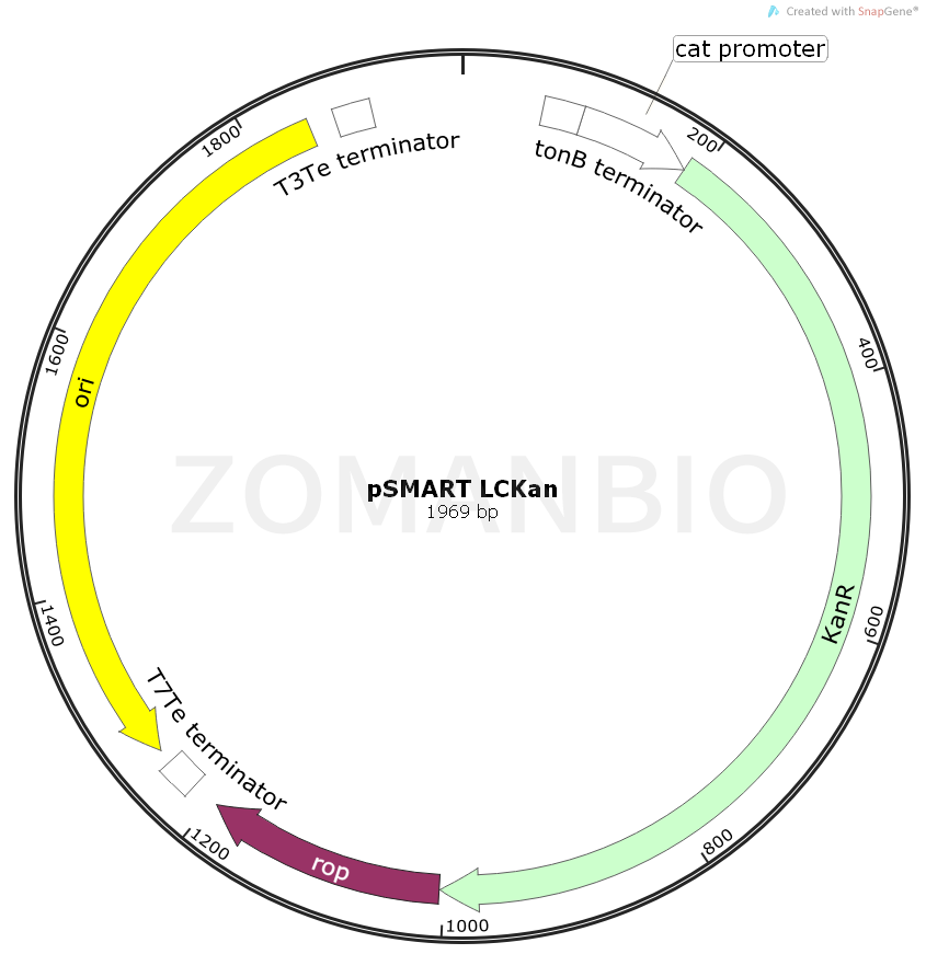 質(zhì)粒序列請(qǐng)下載:ZK2086 pSMART LCKan質(zhì)粒.txt