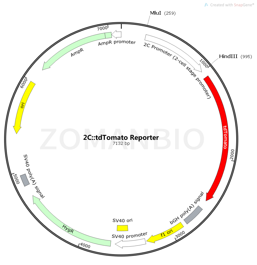2C::tdTomato Reporter是一個哺乳細胞小鼠啟動子紅色熒光蛋白報告質(zhì)粒。